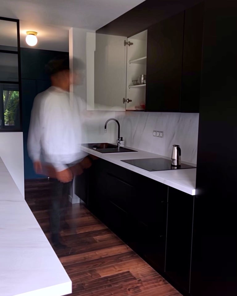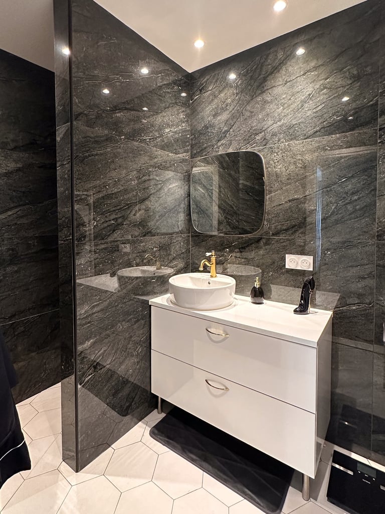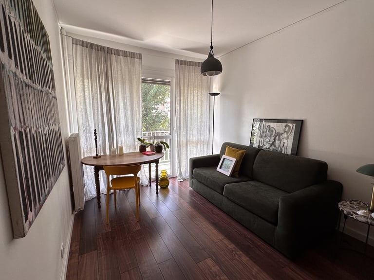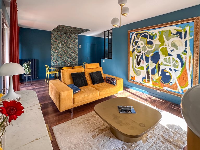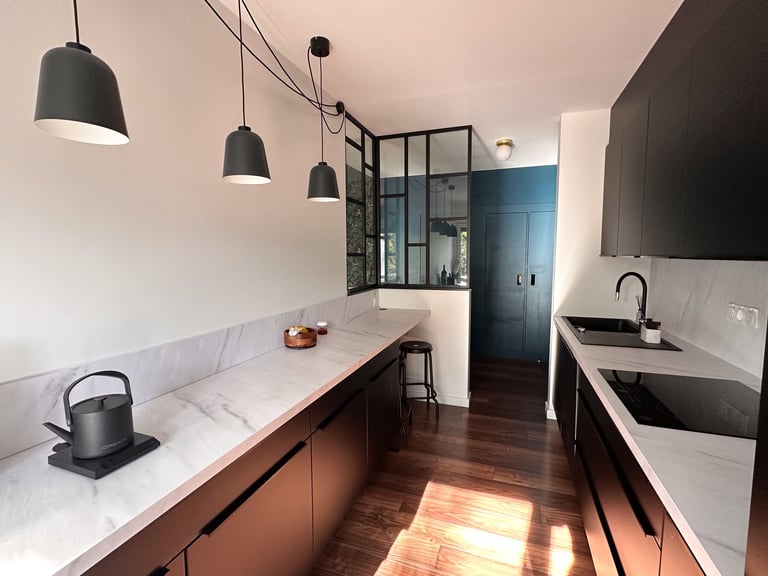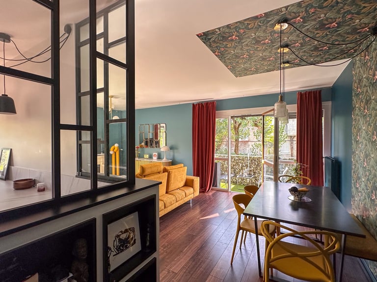 Dans une résidence des années 60, ce T3 à connu un lifting total. Volumétrie et usage ont fait un bon dans le temps pendant que la déco, elle, laissait place aux années 1910. Velours, laiton, marbre, tout le monde a trouvé sa place. Une reconstruction humaine et architecturale dans ce beau trois pièce.