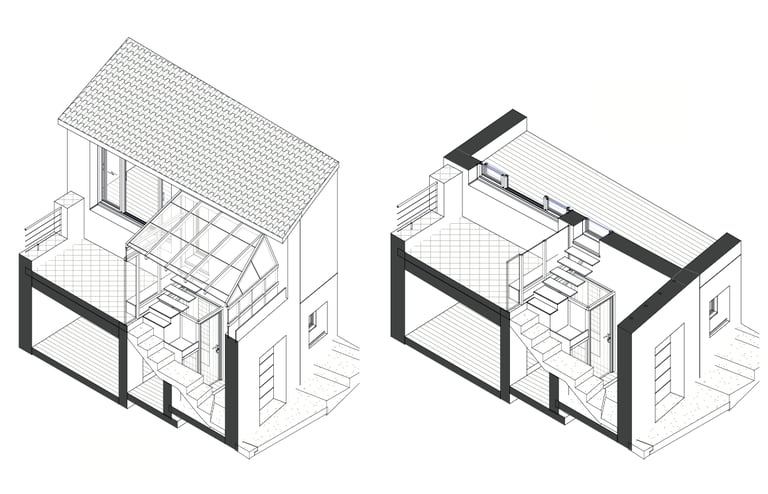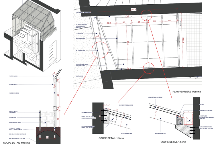 Petit projet d'extension visant à améliorer le rapport entre l’intérieur de la maison et son environnement extérieur direct, en créant une verrière au niveau de l’entrée de la parcelle. Elle vient relier les deux corps de bâtiments pour permettre un usage tout au long de l’année.